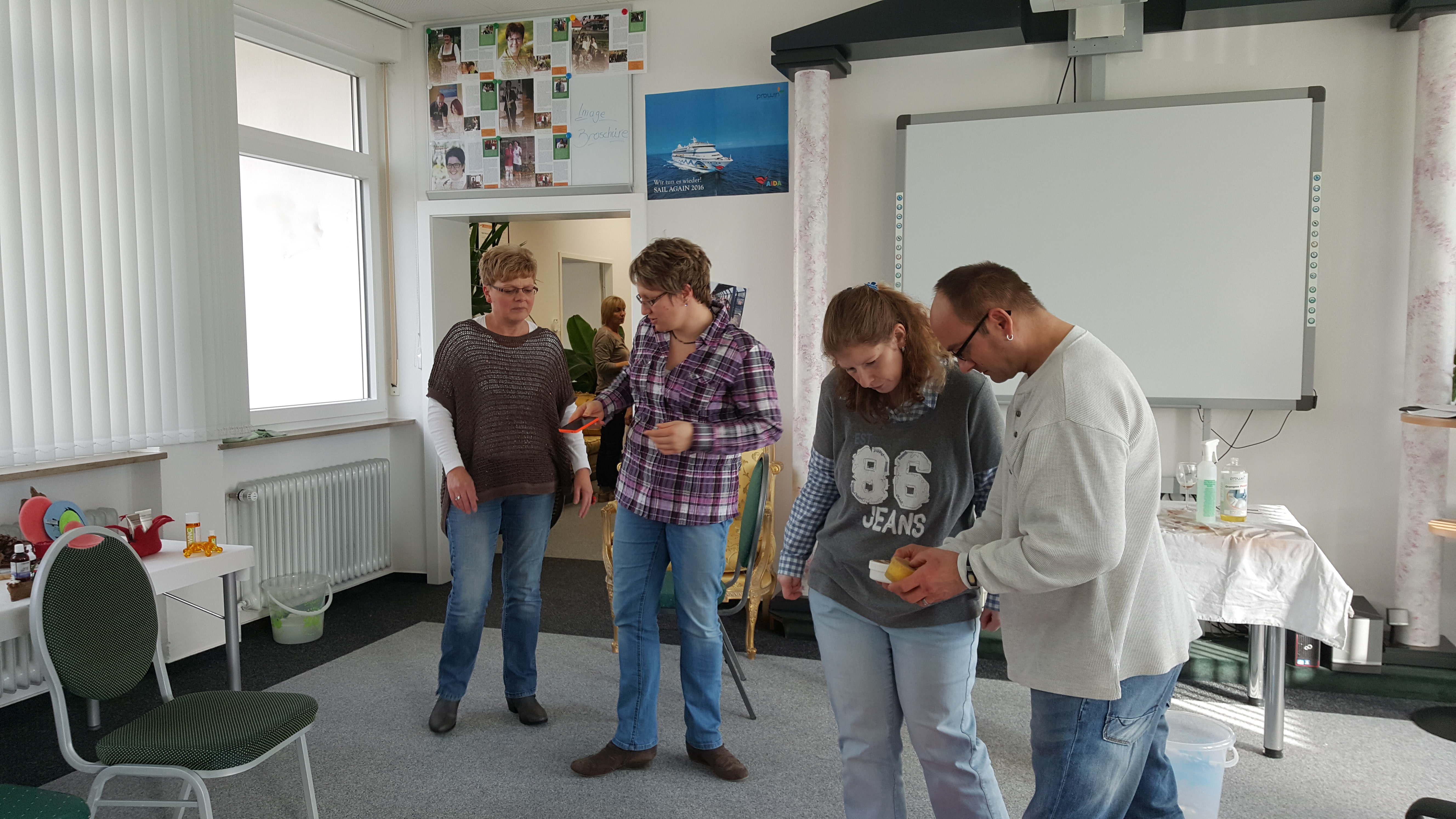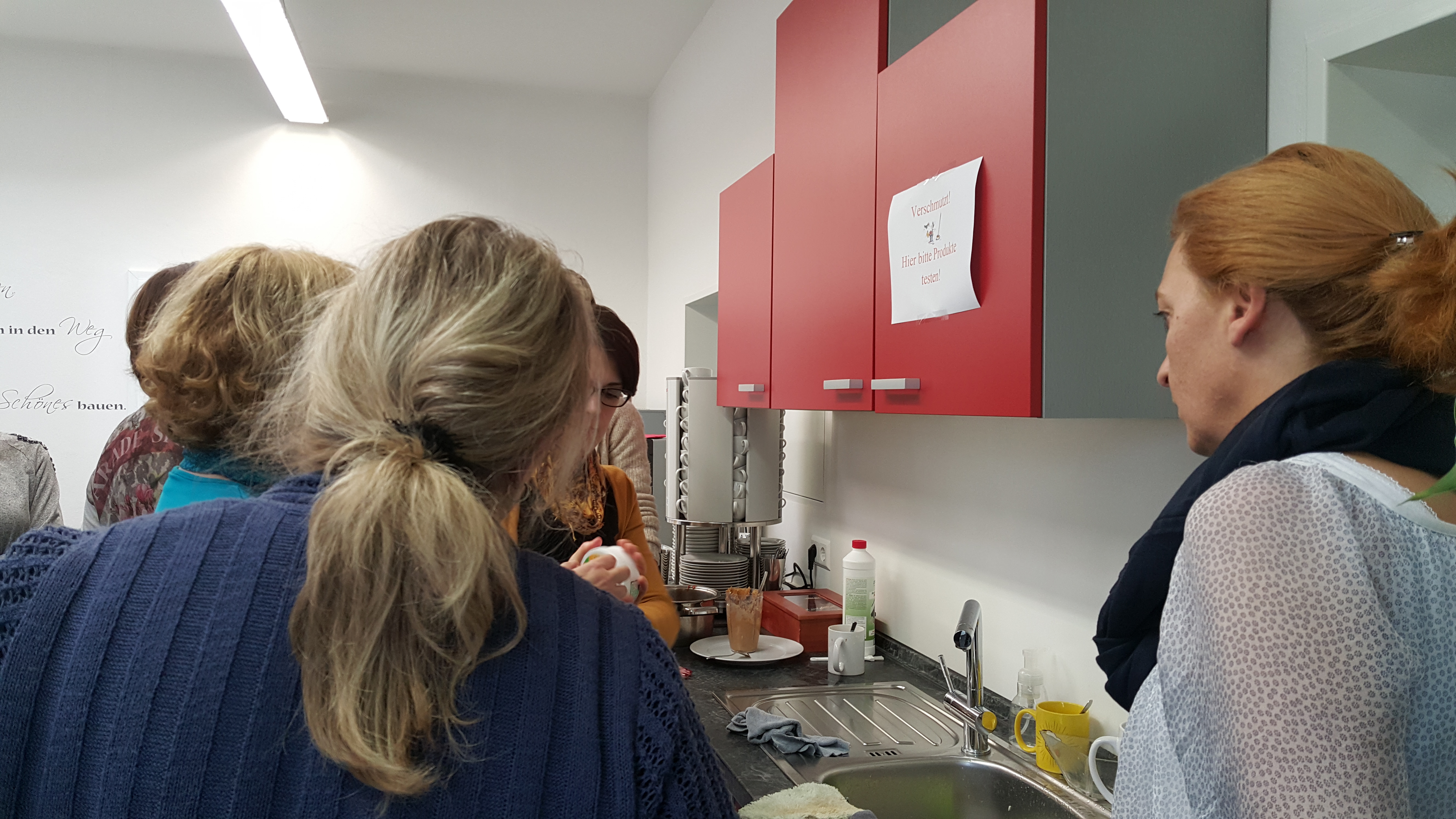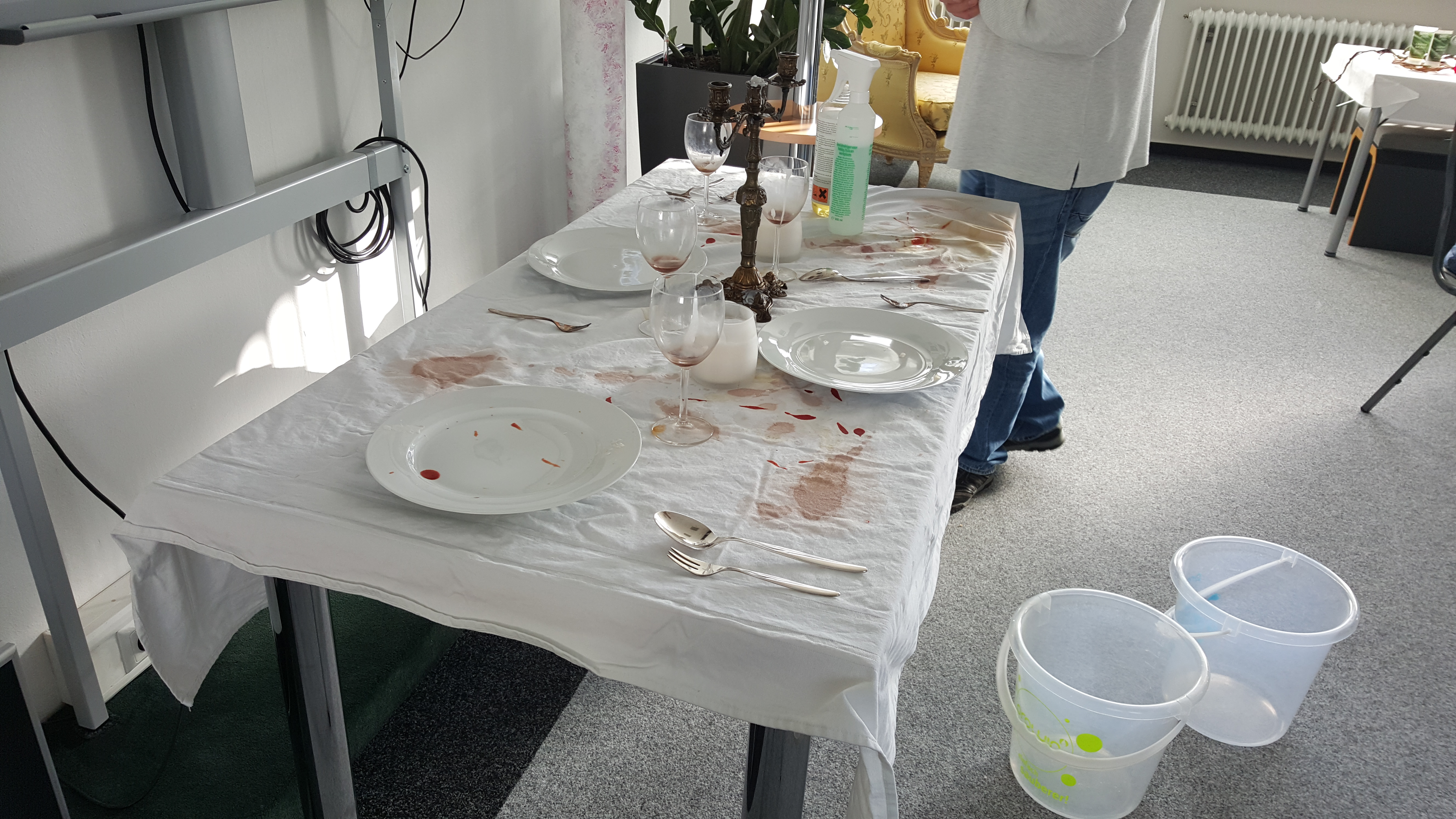 Besonders viel Spaß hatten wir auf der Produktschulung im Nov. 2015. Wir stellten die BeraterInnen vor die Herausforderung eine völlig ruinierte Festtafel zu säubern. Rotwein, Ei, Senf, Wachs…es war alles dabei! Produktschulung Nov. 2015